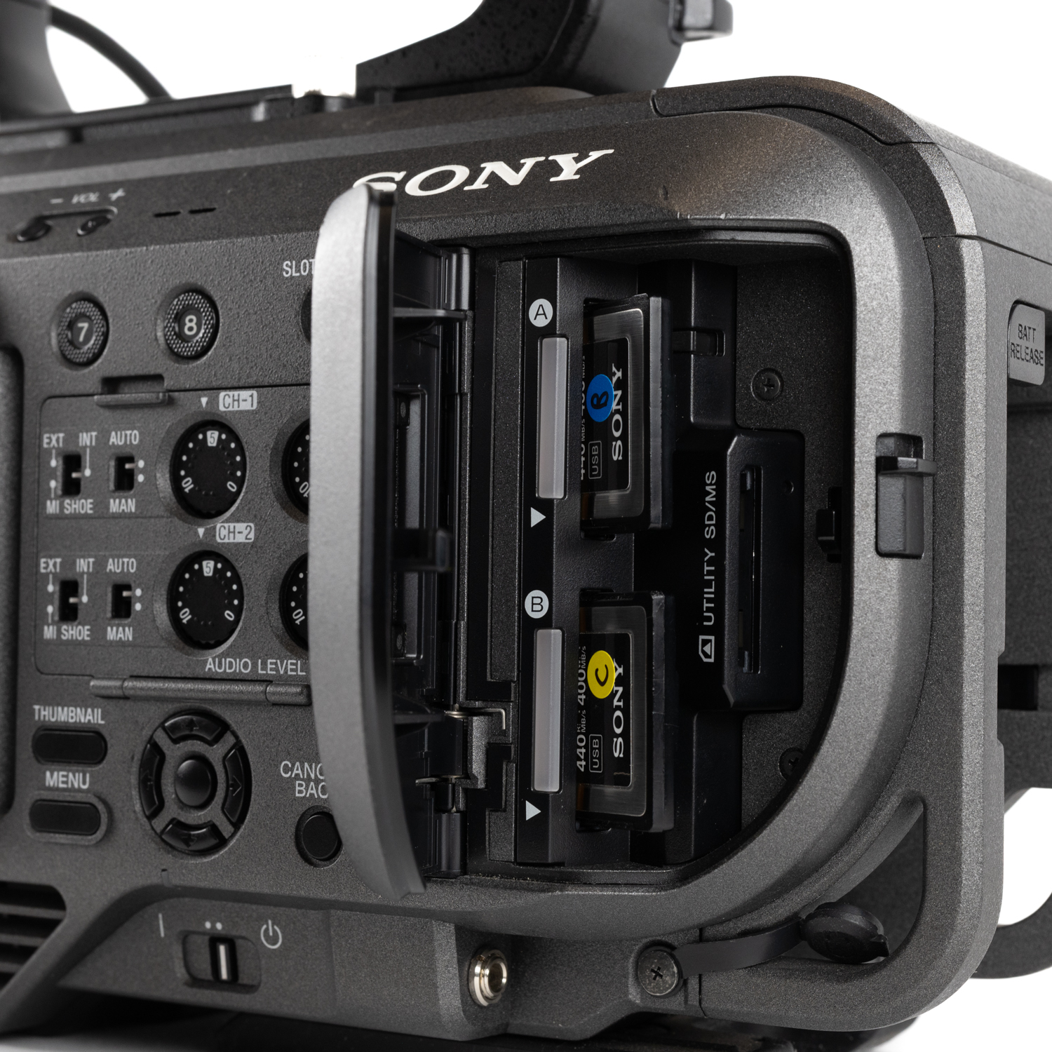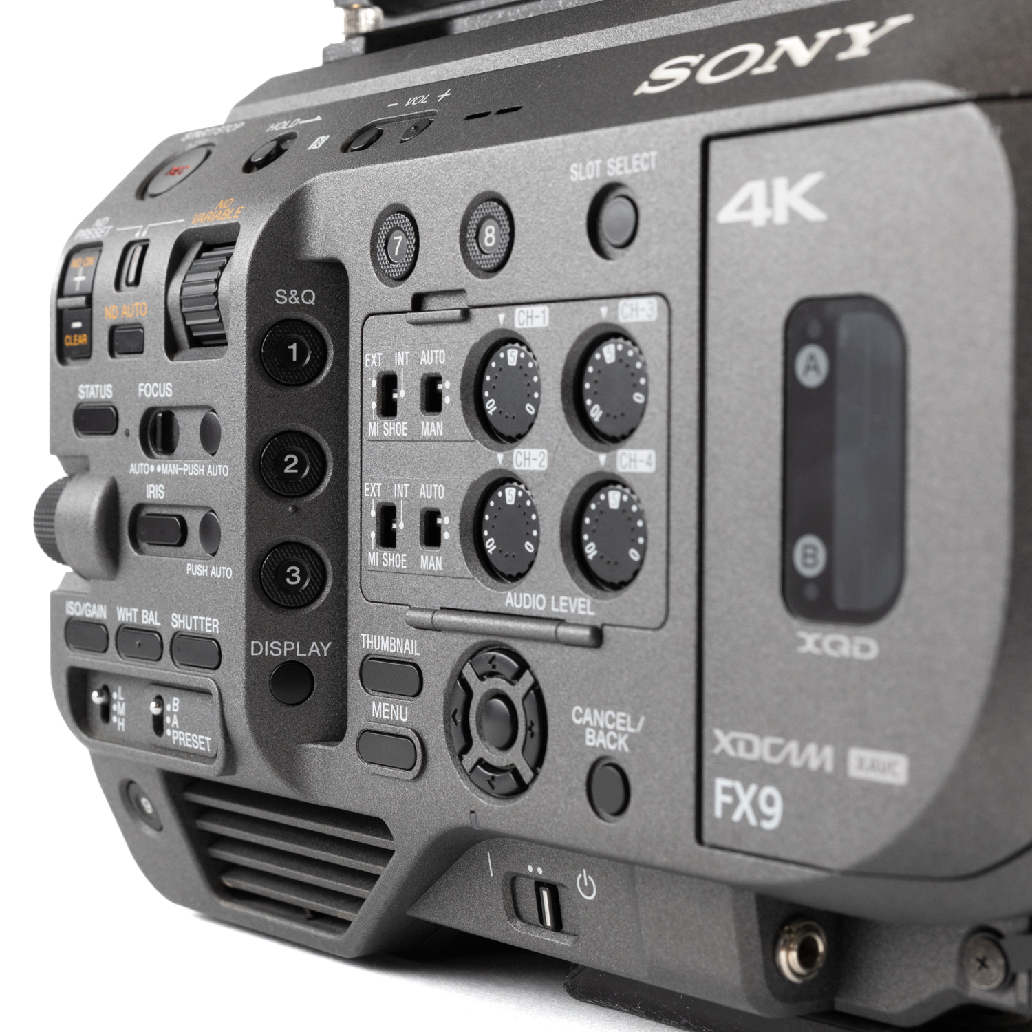 - Emplacements Carte Mémoire : 2x XQD, 1x SD/MS